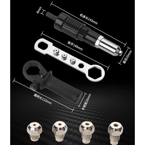 ENLENK Adaptateur De Pistolet à Rivets, Pistolet à Riveter Électrique Avec Boîtier De Moulage En Aluminium Et Poignée Antidérapante Pour Perceuse Sans Fil Outil D’Insertion De Riveteuse Électrique