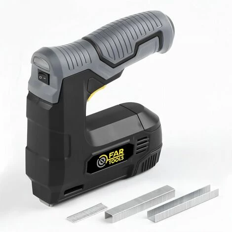 Agrafeuse et cloueuse électrique de 3,6V – 30 coups/min – Clous maximal 10mm (type 47) et agrafes maximal 12mm (type 53) – Capteur de pression, indicateur de charge, poignée ergonomique – Embout de chargement micro USB, temps de charge de 3 a 5h – Livré avec 1000 agrafes et 500 clous – Pour agrafer et clouer rapidement et sans effort – Avec sa puissance et son autonomie, la machine offre 30coups/minute afin d’agrafer ou clouer en série.