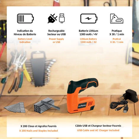 ? Inclus : 200 Agrafes (tailles standard 10,6 à 11,3mm) +200 Clous