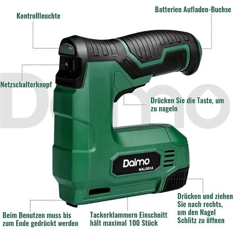 Agrafeuse électrique, agrafeuse sans fil Dalmo 4V avec clous et agrafes Brad (500 chacun, capacité 100, 30 coups/min) et poignée antidérapante, agrafeuse électrique pour projets de menuiserie et de bricolage – NALG01A