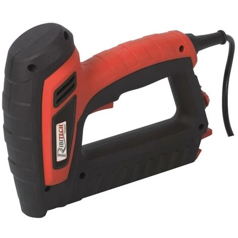 Agrafeuse électrique. • Moteur 220-240V ~ 50Hz • Capacité magasin : 100 agrafes ou 80 clous • Max. 20 coups/min • Molette de règlage de la force d’impact (selon le type de matériau) • C ble électrique 1,8 m (env.) • Poids 1,1kg (env.) • Livré avec 400 agraphes (hauteur 14 mm) et 100 clous (hauteur 15 mm)