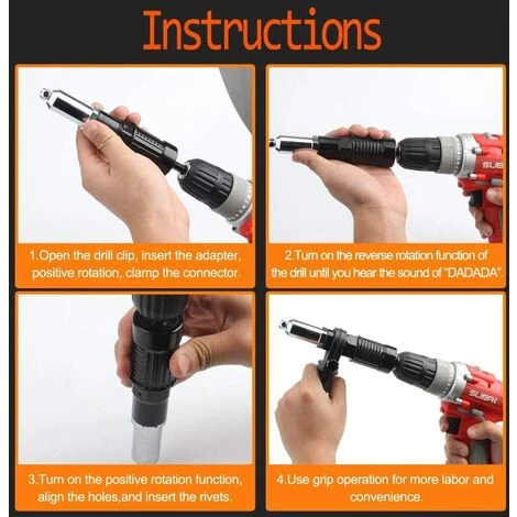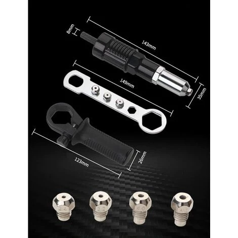 HELLO KITTY BAIN Kit D’adaptateur De Pistolet à Riveter Avec Poignée, Accessoire De Rivet Pour Outil à Main De Rivetage, écrou D’insertion Pour Perceuse Sans Fil