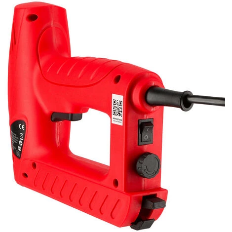 L’agrafeuse électrique assure une fonction 2 en 1 : agrafer et clouer. Elle s’utilise pour différents types de matériaux : du tissu, du cuir, du carton, des feuilles, des matériaux isolants. Un système de sécurité permet un travail sûr et évite l’activation involontaire de l’agrafeuse.