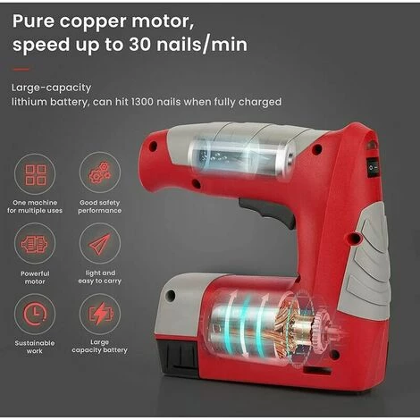 Peuvent répondre aux divers besoins du travail du bois. Agrafeuse sans Fil: L’agrafeuse sans fil est équipée d’une batterie au lithium-ion de 4,2 V, facile à transporter et à utiliser, et dispose d’un indicateur de batterie qui peut vous fournir des informations sur la batterie et l’état actuel de la batterie.