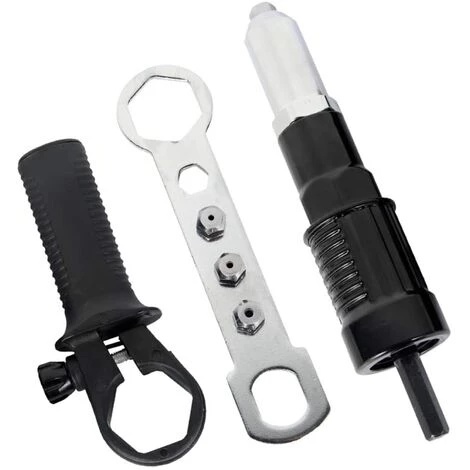 Caractéristiques: : L’adaptateur de pistolet à riveter avec une structure à trois mâchoires peut maintenir efficacement le foret fermement et éviter le problème de glissement. La pince à trois mâchoires trempée et durcie est plus résistante à l’usure et prolonge la durée de vie de l’adaptateur.
