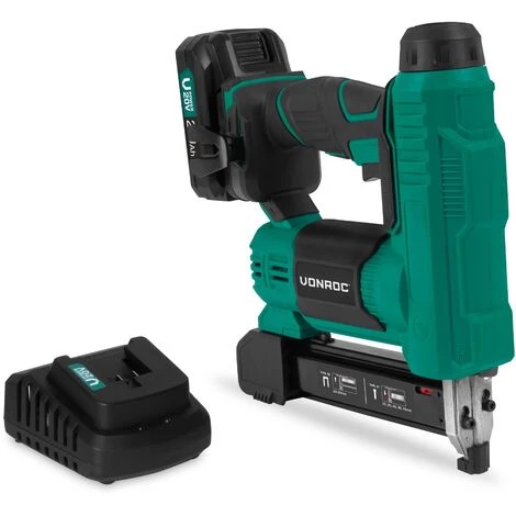 Cette agrafeuse-cloueuse sans fil est livré avec batterie 2.0Ah et chargeur. En effet, l’agrafeuse fait partie de la gamme VPower 20V VONROC. Vous pouvez commander en option la batterie interchangeable 2.0Ah ou 4.0Ah. Si vous souhaitez combiner l’agrafeuse sans fil avec une autre machine de la gamme VONROC VPower 20h il vous faudra une batterie et un chargeur! Choisissez uniquement ce dont vous avez besoin, et ce, à un prix compétitif !