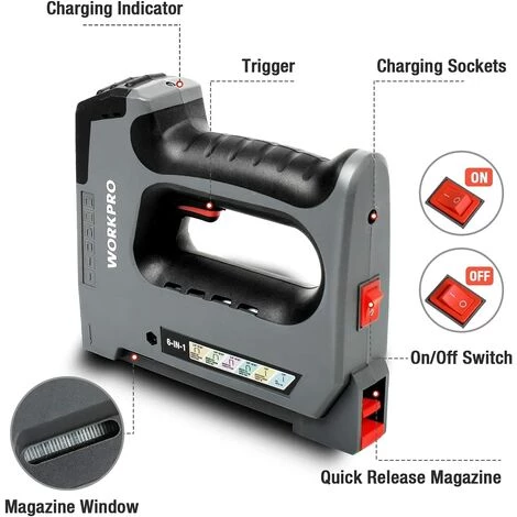 【Applications Larges】Convenable pour la décoration intérieure, la fixation de matériaux, le travail du bois, les meubles, les panneaux d’affichage, etc. Contenu de la livraison: 1 * Agrafeuse électrique, 2000 * Agrafe, 1 * Chargeur, 1 * Mode d’emploi